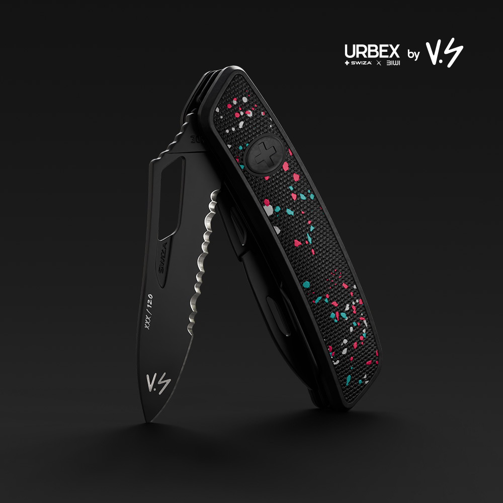 ...Genauer gesagt einer Zusammenarbeit mit dem innovativen Künstler Saiff Vasarhelyi. Der Schweizer verwandelt Alltagsgegenstände in peppige Graffiti-Style Kunstwerke. Ob Autos, Reifen, Kappen oder Uhren, nichts entgeht seiner kreativen Ader. Und jetzt sorgt seine Fantasie ebenfalls für das Design einzigartiger Taschenmesser. Die fesselnde Welt des Künstlers passt nämlich perfekt zur handwerklichen Genialität von SWIZA. Eine Mischung, aus der 120 aufregende Unikate der Urbex-Kollektion entstanden sind. Sie verbinden nicht nur Urbanität und künstlerische Freiheit, sondern reagieren vor allem auf UV-Licht! Je dunkler es wird, desto stärker zeigen sich die Kunstwerke. Zudem wurde die Signatur des Designers direkt auf die Klinge graviert und die Messer nummeriert. Hierdurch werden die limitierten Tools umso mehr zu begehrten Sammlerobjekten.