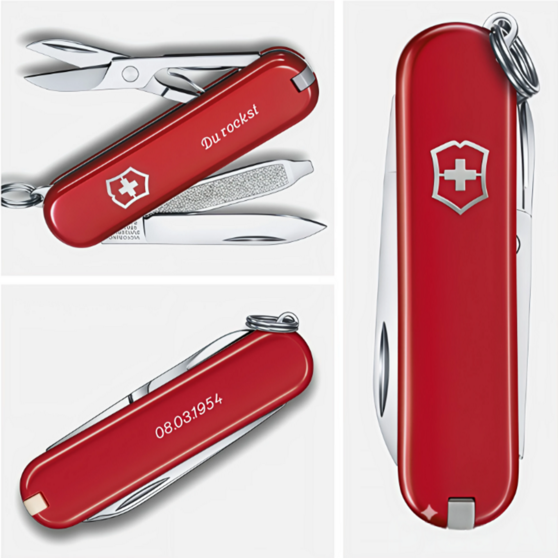 Unser Tipp: Mit einer persönlichen Gravur wird das Tool noch individueller. Ob auf der Klinge oder auf dem Griff – rechts findest du ein paar Ideen, die dir schon mal einen kleinen Eindruck vermitteln. Deine Wunschgravur kannst du später ganz einfach im Gravurfeld angeben. So wird aus einem Sackmesser ein ganz originelles Geschenk mit WOW-Faktor...