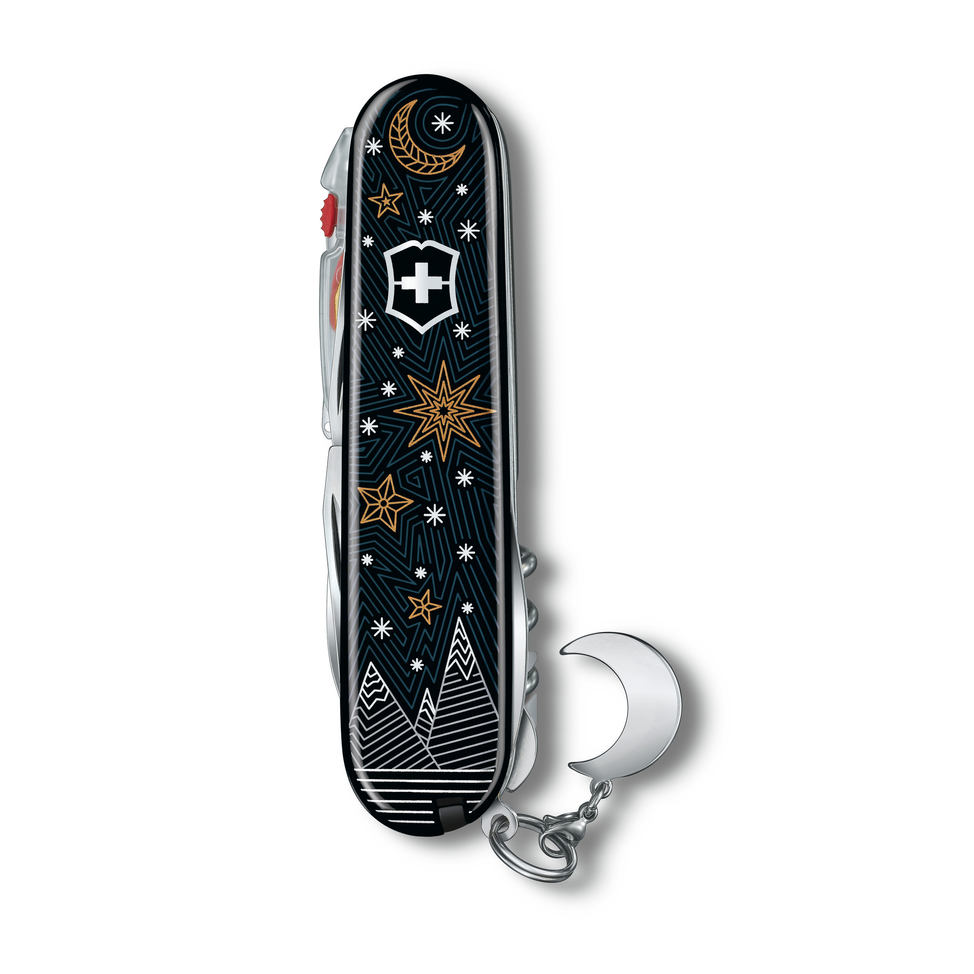 Mit dem Winter Magic Special Edition 2021 hat Victorinox ein sehr gängiges Modell präsentiert. Es ist das Victorinox Climber, in der exklusiven Ausführung mit Licht und einem neckischen, silberfarbenen Mondanhänger. Dieses Modell ist bereits vergriffen, die Nachfrage war sehr gross.