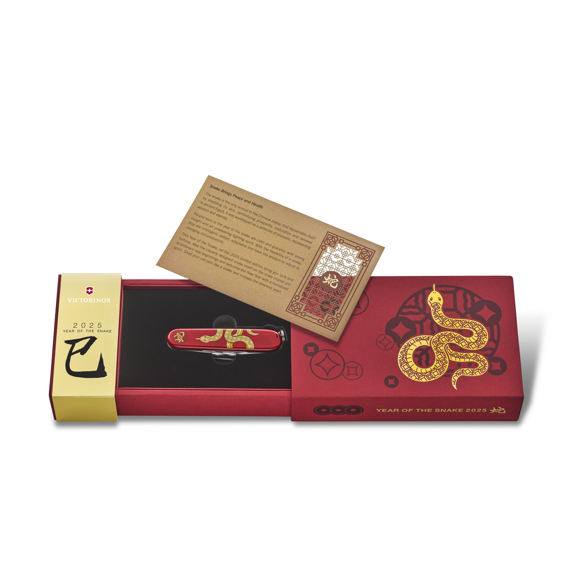 Bereits seit einigen Jahren bringt die Firma Victorinox zu Ehren der chinesischen Tierkreiszeichen eines der wohl meistverkauftesten Taschenmesser, den Huntsman, als spezielle, limitierte Edition heraus. Der Huntsman Year of the Snake 2025 ist traditionsgemäss auf der Vorderseite mit einer Schlange gefertigt, die Seriennummer ist, wie gehabt, dezent unter dem Korkenzieher eingraviert. In der chinesischen Astrologie symbolisiert die Schlange Weisheit, Intuition und Eleganz. Sie gilt als weise Ratgeberin, die in schwierigen Situationen ruhig und bedacht handelt. Auf der zugehörigen Geschenkschachtel wurden traditionelle Symbole wie ein Knotenmotiv und Kupfermünzen abgebildet, welche den Reichtum und Wohlstand versinnbildlichen sollen.