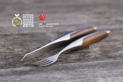 Mit grosser handwerklicher Präzision und hochwertigen Materialien hat der Bieler Traditionshersteller sknife ein Steakbesteck erschaffen, das das Erlebnis beim Essen unvergleichlich maximiert. Geschmiedet aus speziellem Chirurgenstahl, erhöht sich die Korrosionsbeständigkeit um das Vierfache! Doch was bei diesem Duo vor allem überzeugt, ist sein beeindruckendes Design. So wurde das Set 2022 sogar mit dem begehrten TableWare International Award of Excellence in London ausgezeichnet. Erhältlich ist das Steakbesteck mit einem Griff aus edlem Walnussholz oder schwarzer Esche. Sei beruhigt, trotz seines Namens kann es mehr als nur Fleisch...